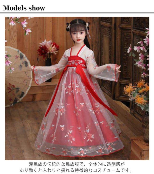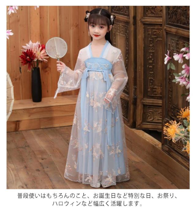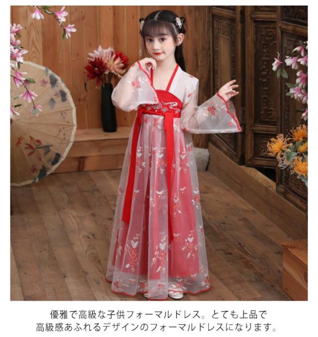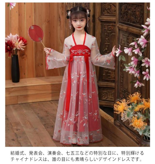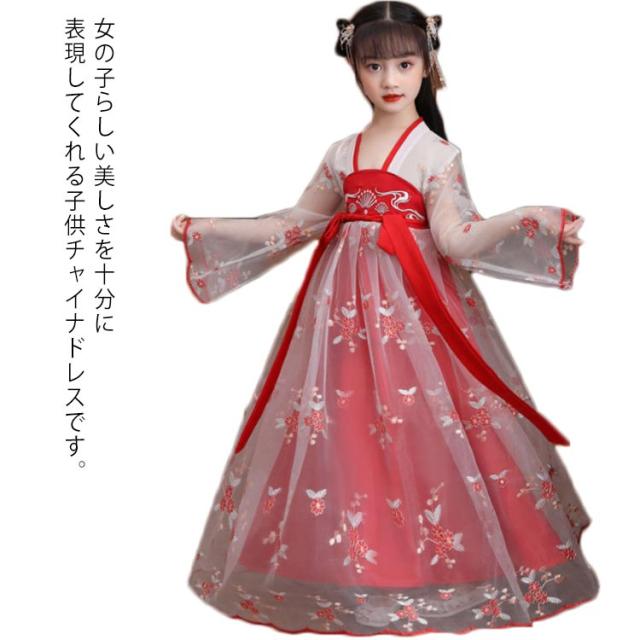 チャイナ風 漢服 ワンピース キラキラ 天女 子供服 チャイナドレス 女の子 チャイナ服 古風 チュール キッズ かわいい コスプレ ハロウィン コスチューム 文化祭 発表会