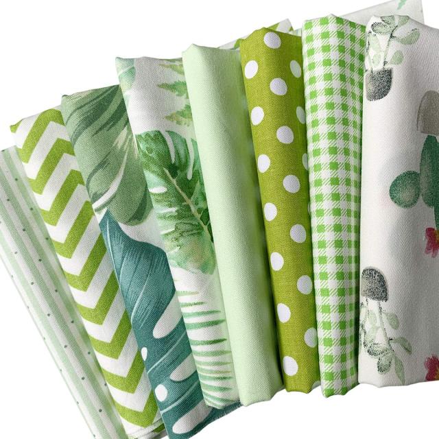 8枚 北欧風 生地 布 大柄 綿100% 手芸 手作り カットクロス 布地 セット 46×56cm (グリーン)