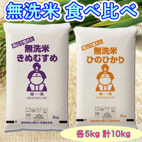 無洗米 食べ比べ (きぬむすめ・ひのひかり) 各5kg 計10kg 令和6年産 岡山県産 お米 10kg 送料無料 北海道・沖縄宛配送不可