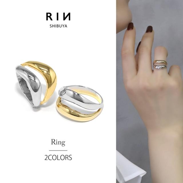 アクセサリー 指輪 レディース リング ダブルリング 2連 レイヤード ボリューミーコンビカラー バイカラー 10号 デザインリング 可愛い 凛