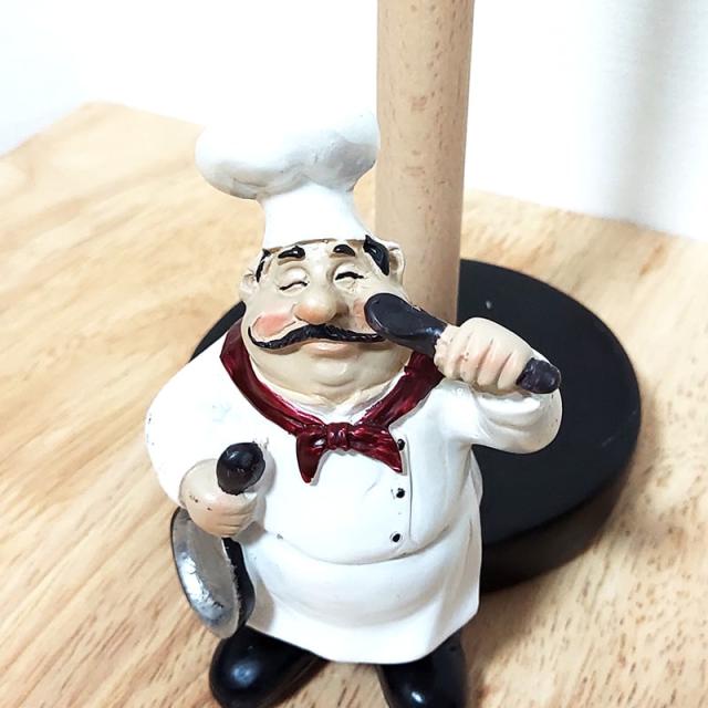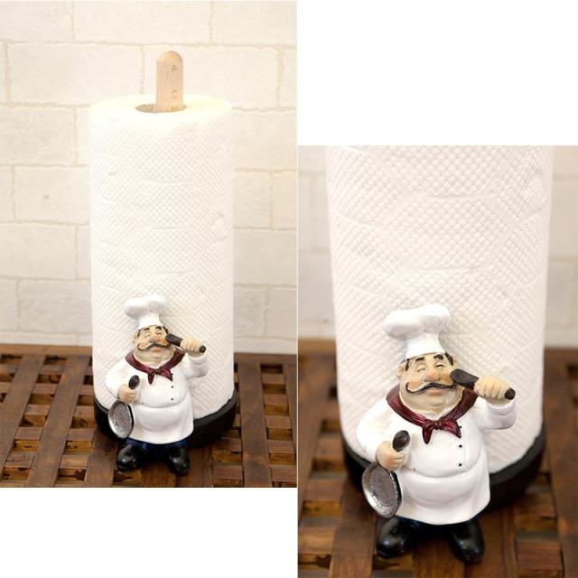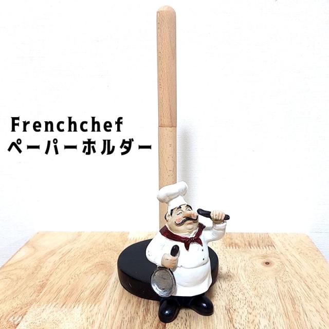 ペーパーホルダー フレンチシェフ おじさん 可愛い アメリカン フライパン キッチン 雑貨 キッチングッズ