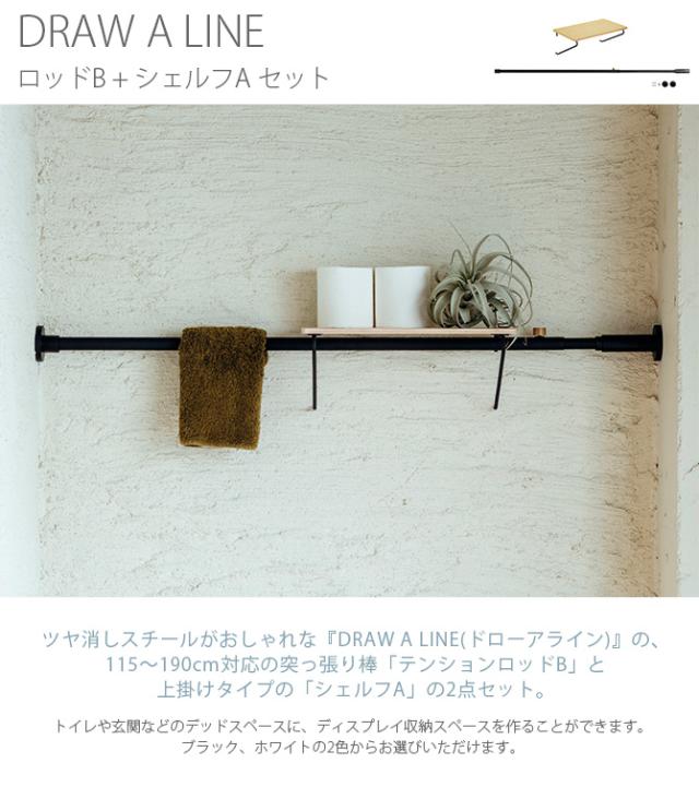 DRAW A LINE ドローアライン ロッドB+シェルフA セット 突っ張り棒 つっぱり棒 おしゃれ セット 伸縮 横 棚 北欧 インダストリアル インテリア