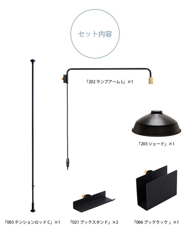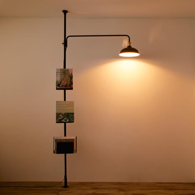■備考:ツヤ消しスチールがおしゃれな『DRAW A LINE(ドローアライン)』の、「縦専用ロッド」と照明、ブック収納パーツがセットになった6点セット。