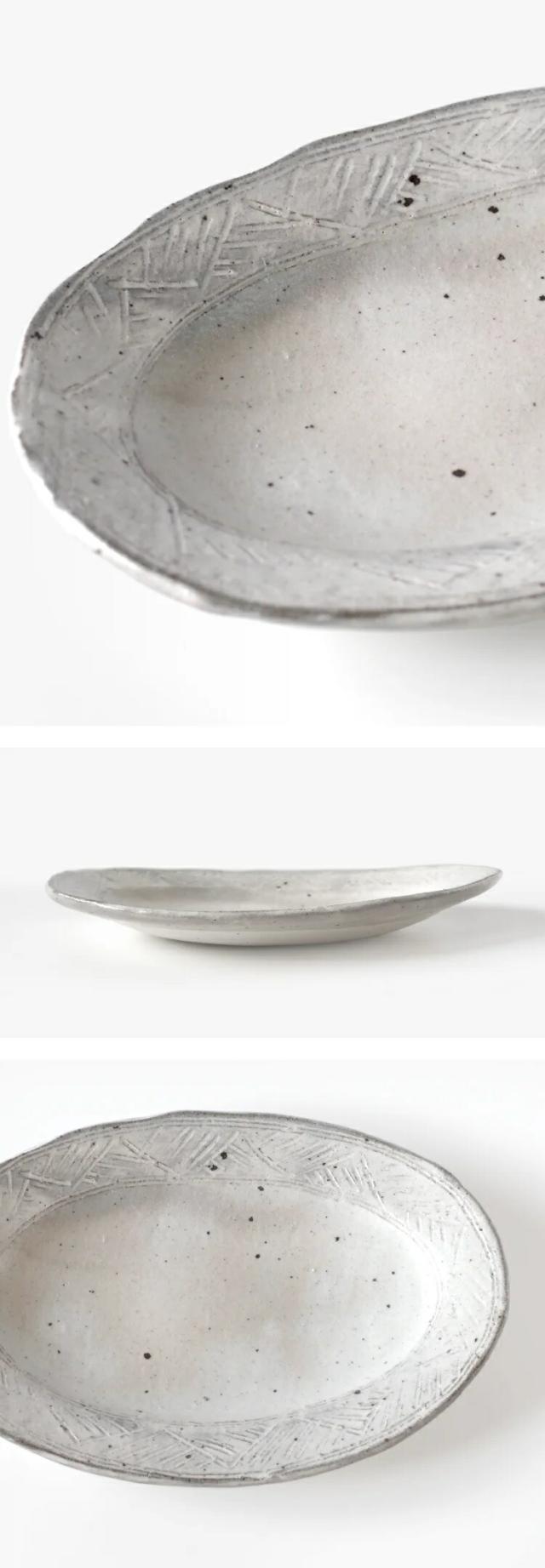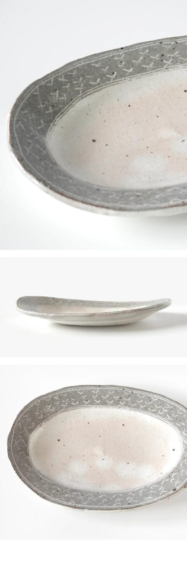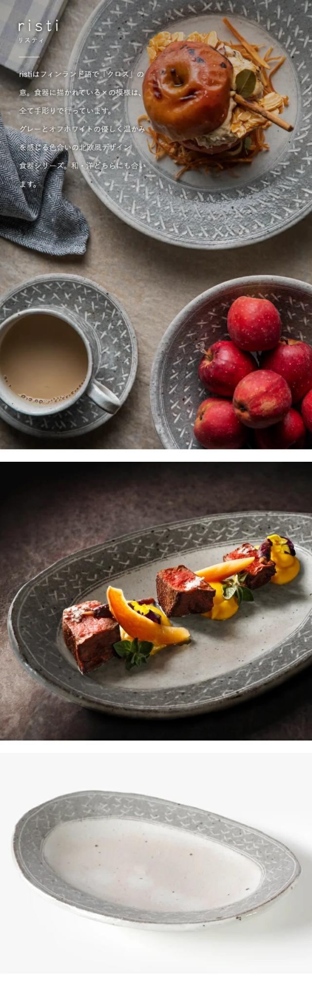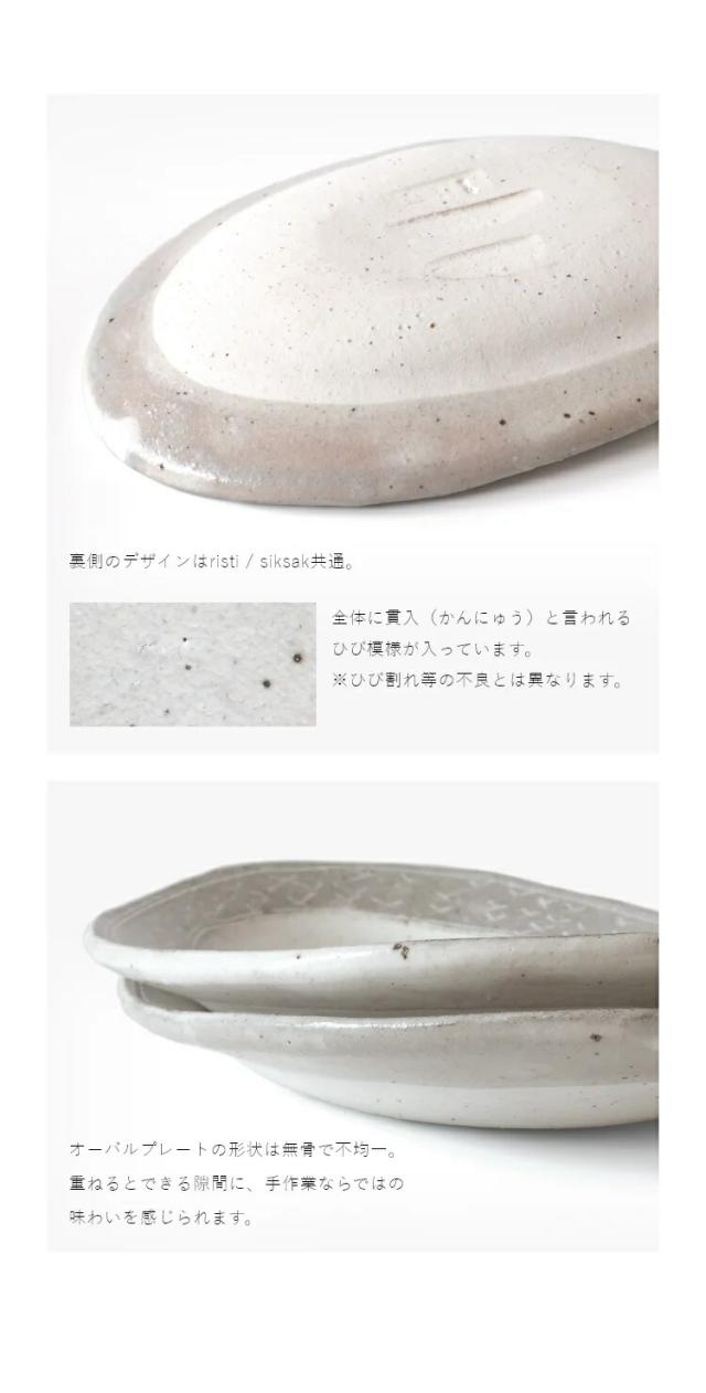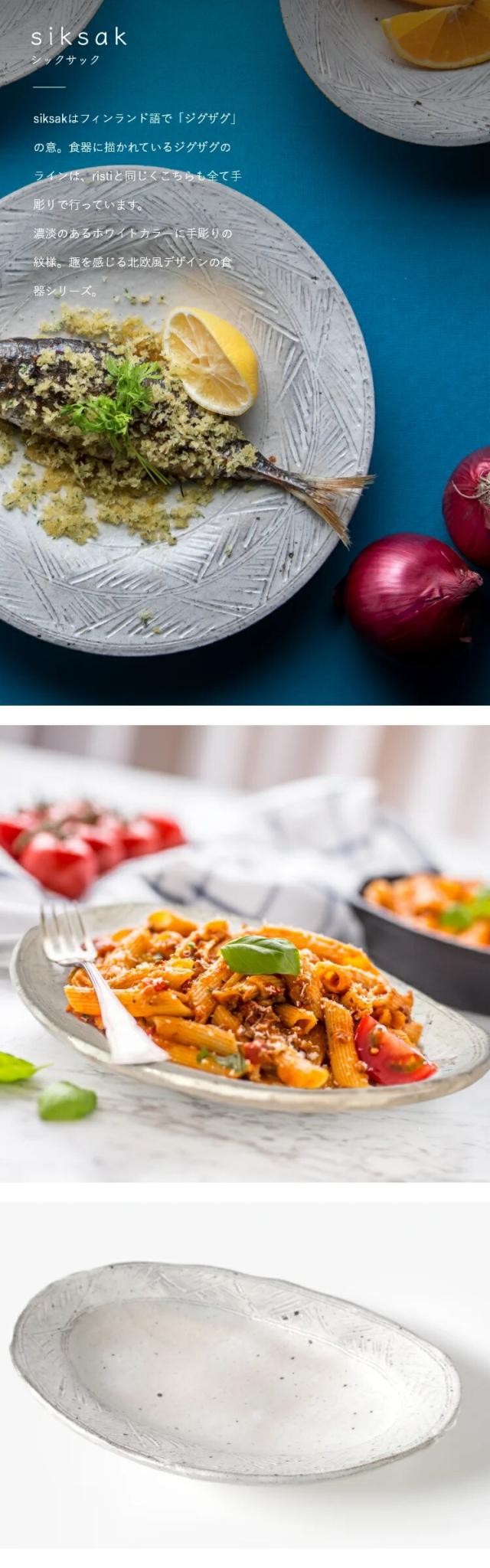 兵山窯が手掛ける美濃焼きのオーバルプレートは、フィンランド語で「クロス」を意味する「risti」と「ジグザグ」を表す「siksak」という名前が付けられています。