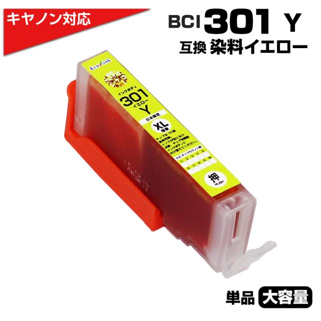 BCI-301 Y イエロー×1個 染料 大容量 キャノン/Canon 互換インクカートリッジ イエロー 染料インク BCI301 BCI-301XLY PIXUS TS7530