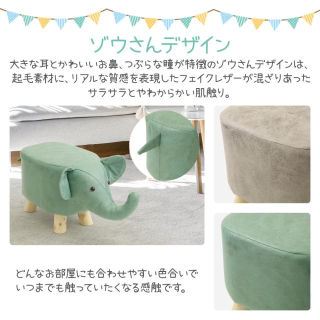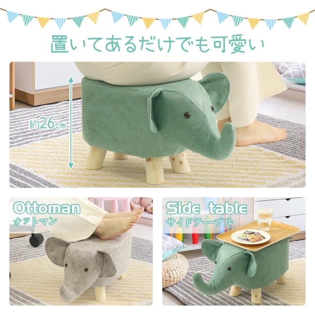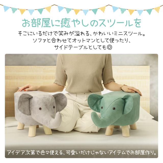 アニマルスツール 座れるぬいぐるみ アニマル スツール 動物スツール 椅子 いす イス チェア チェアー ぬいぐるみ どうぶつ 動物 北欧 かわいい 家具 一人暮らし インテリア 木製 動物椅子 オットマン フットスツール ゾウ ぞう 象 子ども部屋 グレー グリーン おしゃれ