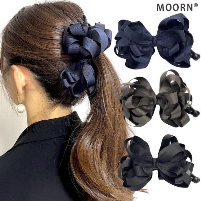 バナナクリップ リボン 大きめ しっかり ヘアクリップ シンプル 大人 可愛い ボリューム リボン バナナクリップ 大きめ ヘアクリップ レディース お洒落 まとめ髪 髪留め 上品 ヘアアクセサリー 黒 ブラック 紺 ネイビー ブラウン 通勤 通学【MOORN/モーン】MRN-BNN23051