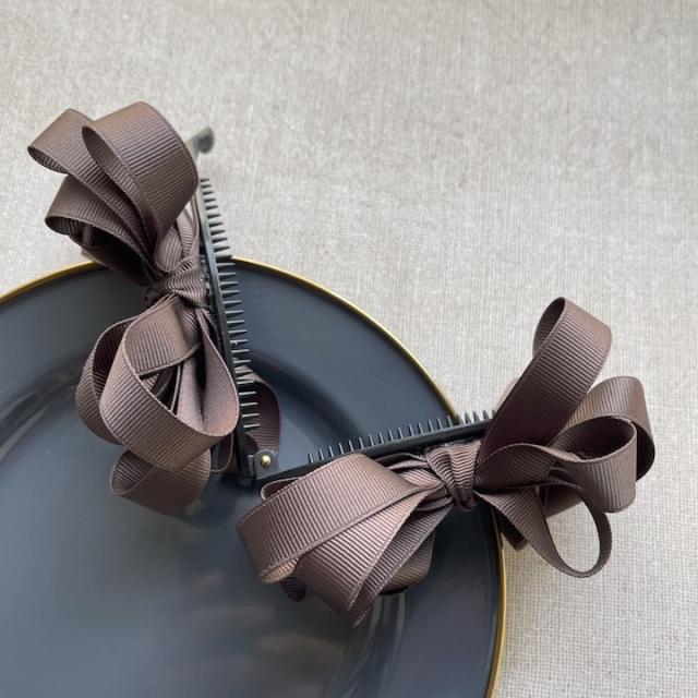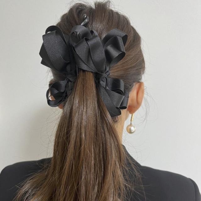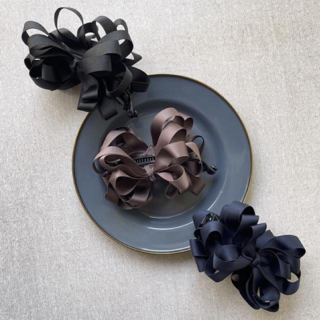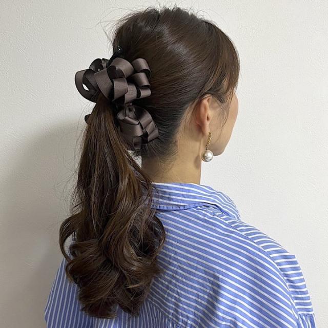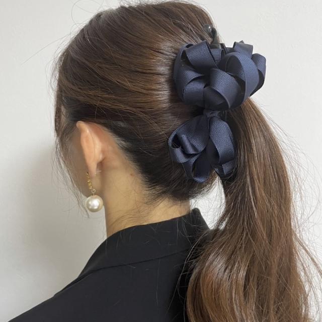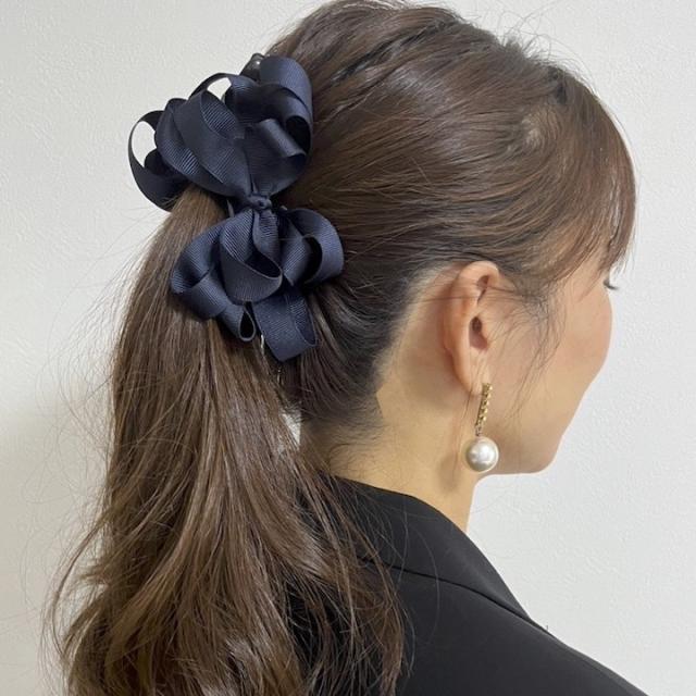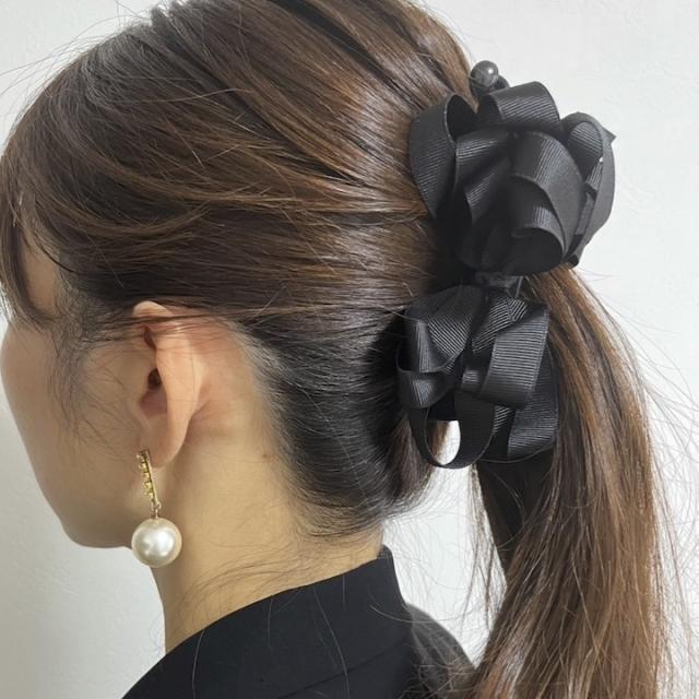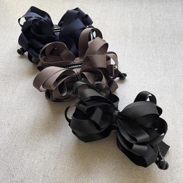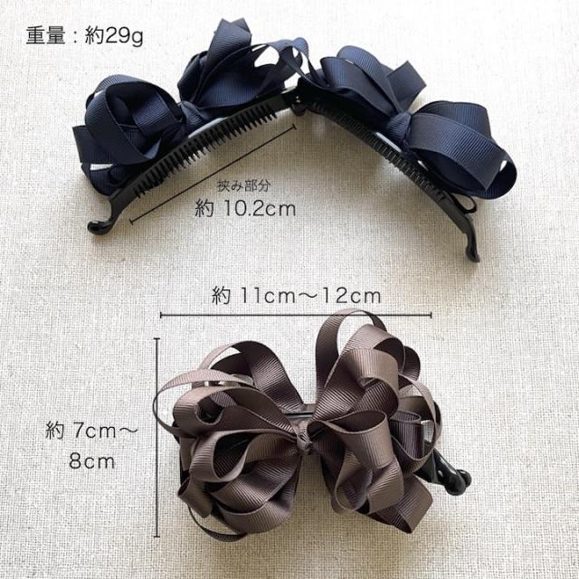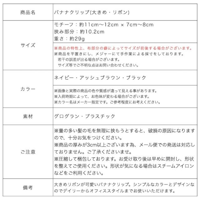 大きめリボンが可愛いバナナクリップ。シンプルなカラーとデザインなのでデイリーからオフィススタイルまでお使いいただけます。