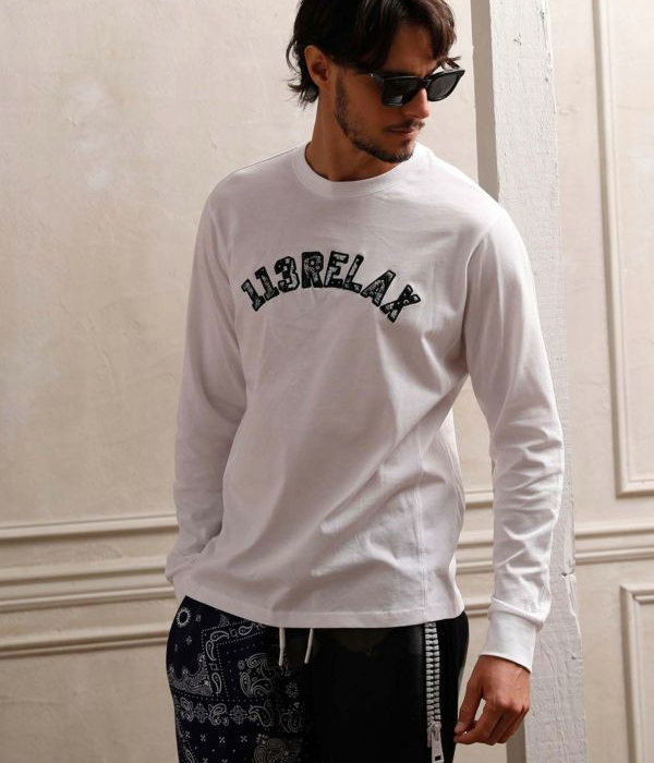 1PIU1UGUALE3 RELAX ウノピゥウノウグァーレトレ リラックス ペイズリーロゴロングTシャツ 長袖 ロンT メンズ カットソー カジュアル スポーツ ブランド