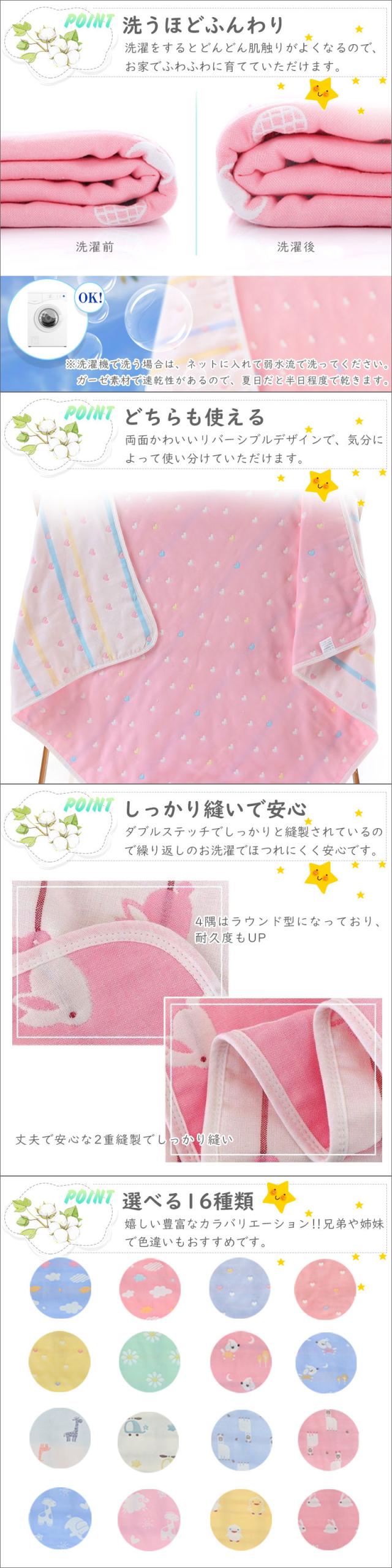 6重 ガーゼケット 110×110cm 16種類 リバーシブル ベビー 子供用 綿100 ふんわり ふわふわ 肌さら さらさら 丸洗い お家で育てる タオルケット 快適 保温性 敏感肌 オールシーズン やわらかい お昼寝ケット おなかケット バスタオル ガーゼ 新生児 お昼寝 両面