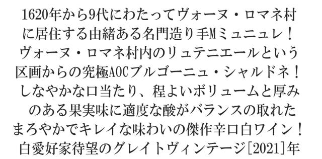 ブルゴーニュ シャルドネ 2021 蔵出し品 手摘み100% ドメーヌ モンジャール ミュニュレ元詰 AOCブルゴーニュ シャルドネ
