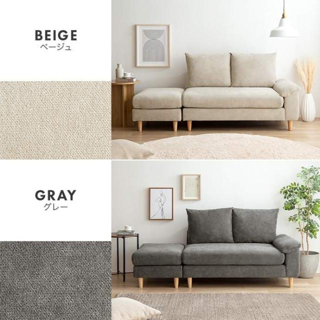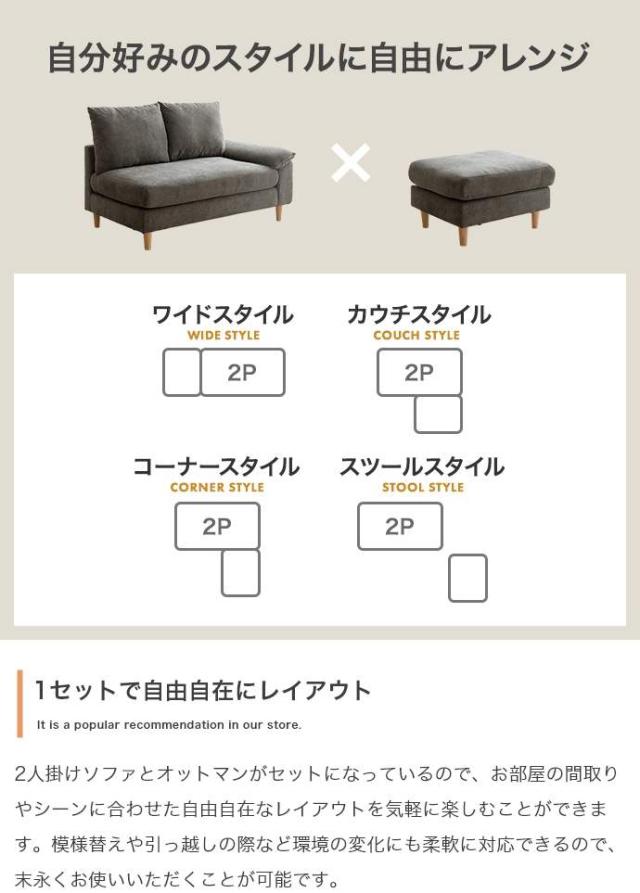 オットマン付き2人掛けカウチソファ 2点セット ソファ ソファセット ソファベッド ソファーベッド ごろ寝 布張り 肘付き Mellow