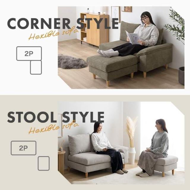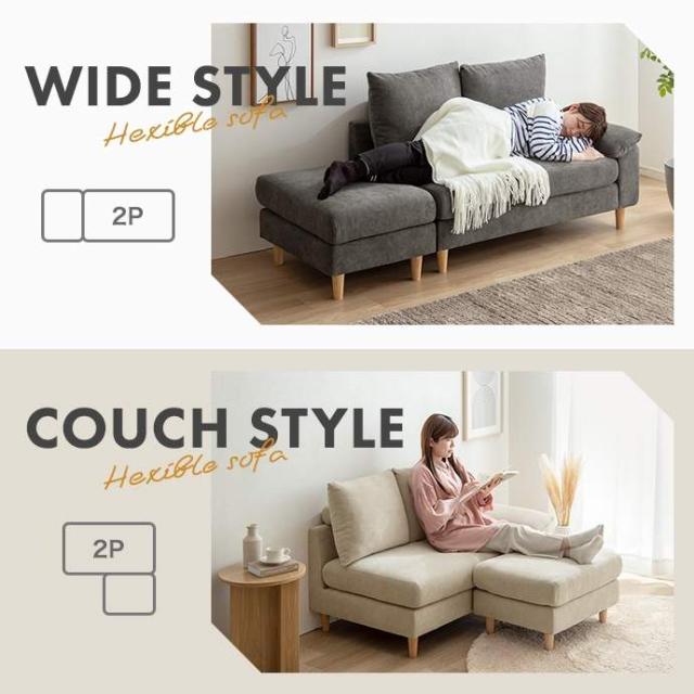 ゆったりごろごろくつろげる『Mellow(メロー)』オットマン付き2人掛けソファ。