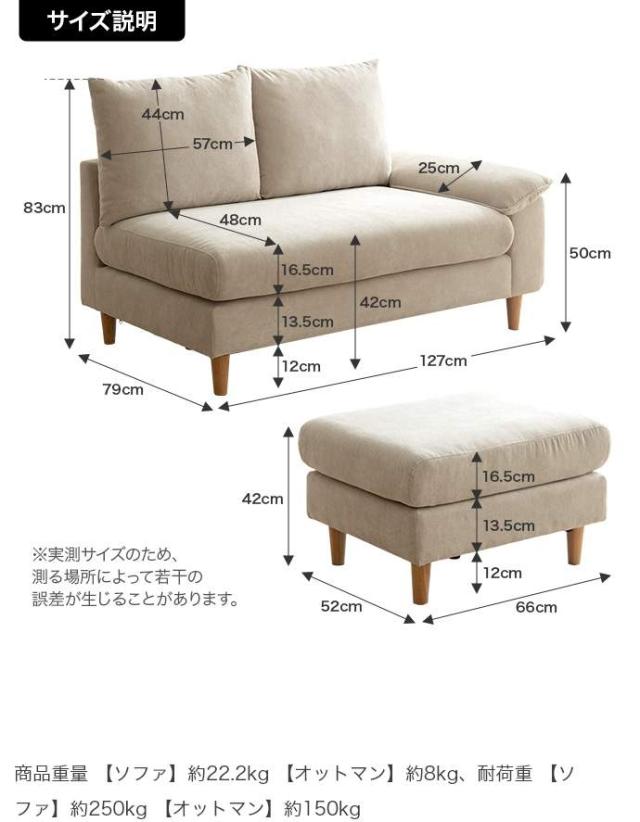 【耐荷重】ソファ:約250kg、オットマン:約150kg