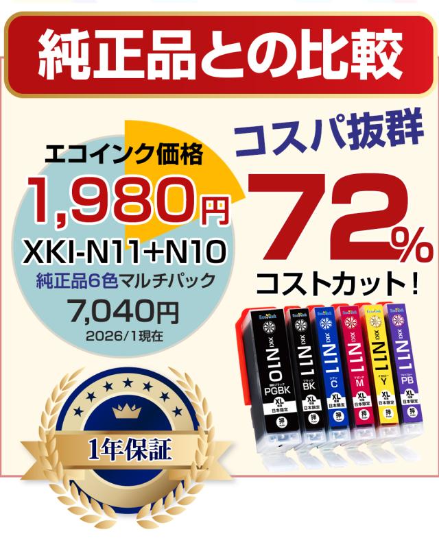 インク成分:XKI-N10 / XKI-N10XL/顔料インク XKI-N11/ XKI-N11XL/染料インク
