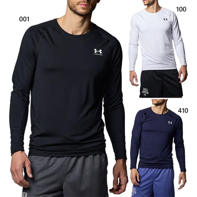 春夏用 アンダーアーマー メンズ ヒートギア フィッティド ロングスリーブシャツ アンダーウェア スポーツインナー 長袖 速乾 トレーニング ストレッチ ホワイト 白 ブラック 黒 ネイビー 送料無料 UNDER ARMOUR 1387940