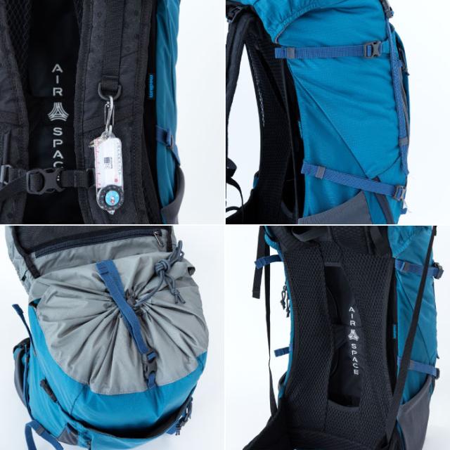 リュックサック本体と背中の間にairspaceシステム構造を用いた中型リュックサック。通気性に優れ快適な背負い心地を実現。さまざまな用途に対応する複数のポケットを設置。中でもフロントポケットは、J字型に開閉するアクセスジッパーを配置したことにより、大きな荷物の出し入れにも便利で、サイドからのアクセスも可能。