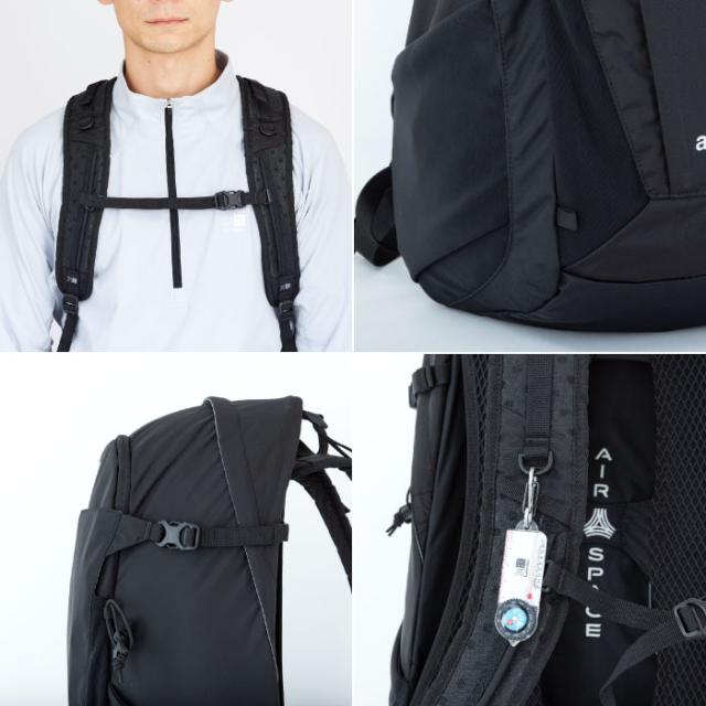 リュックサック本体と背中の間にairspaceシステム構造を用いた小型リュックサック。通気性に優れ快適な背負い心地を実現。さまざまな用途に対応する複数のポケットを設置。本体内部の荷物へのアクセスが容易なパネルロードタイプ。