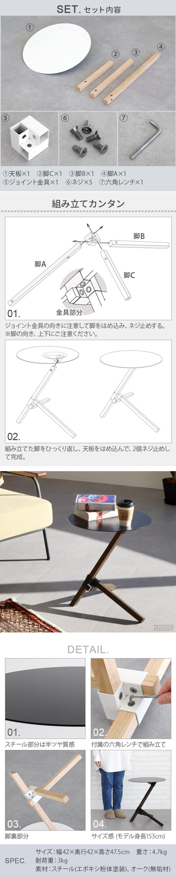 サイドテーブル 丸 おしゃれ デュエンデ トレ サイド テーブル DUENDE TRE SIDE TABLE DU0210 ベッド ソファー 差し込み スチール オーク材 木製 ミニテーブル ベッドサイド ナイトテーブル 新生活 家具 インテリア 机 白 黒【12時迄のご注文は当日発送★送料無料★P5倍】