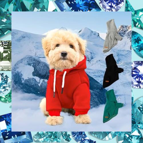 ペットを暖かく、かわいく。無地のクラシックで快適なポケット付きフード付きスウェットシャツ