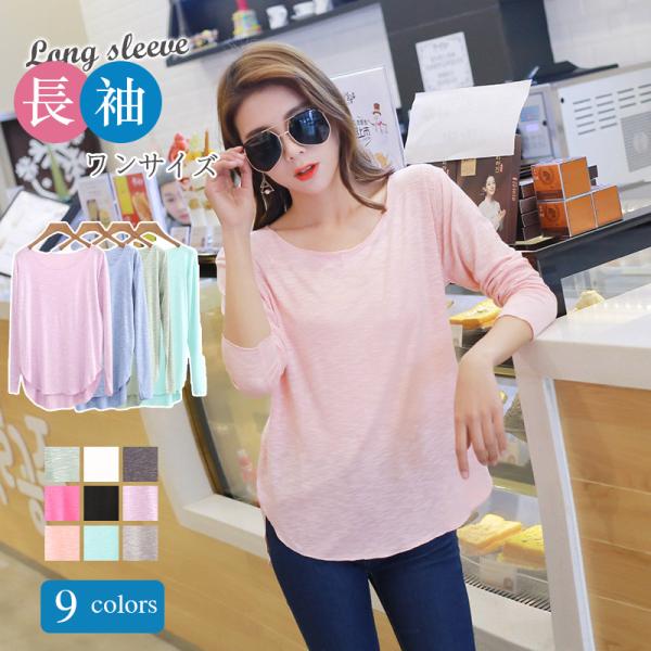 【2枚購入で25%OFF!】ロンティー レディース カットソー レディース 長袖 トップス ロングTシャツ ロンT Tシャツ ゆったり
