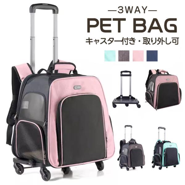 ペットキャリー リュック キャスター付き 猫 犬 小型犬 ペット リード 折りたたみ 3way 通気性 耐荷重 15kg 旅行 車 お散歩 防災