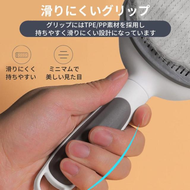 ハンドルは握りやすいカーブと、滑りにくいTPE/PP素材の突起つき。力を入れずに大切なペットのお手入れができます。