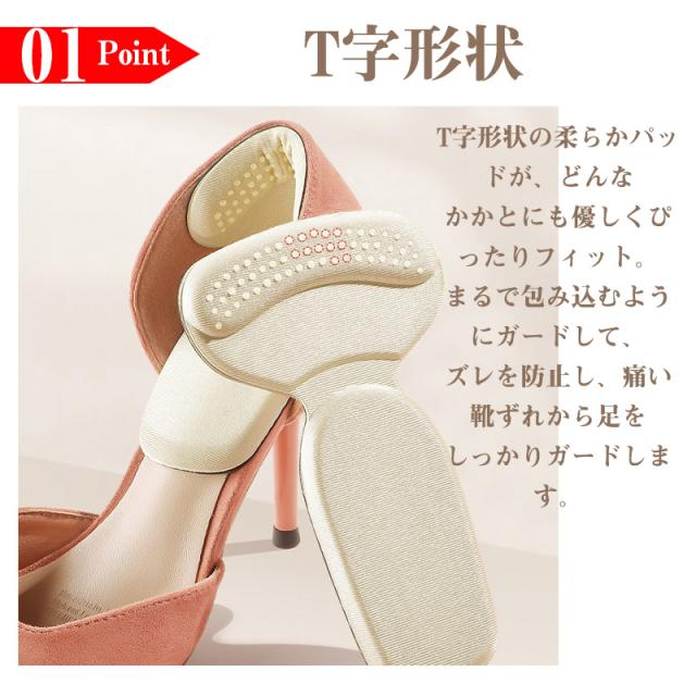 L字形、T字型状の厚手のジェルクッションがかかとを優しく包み、