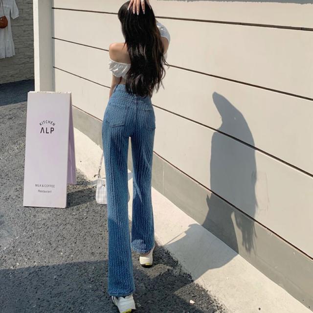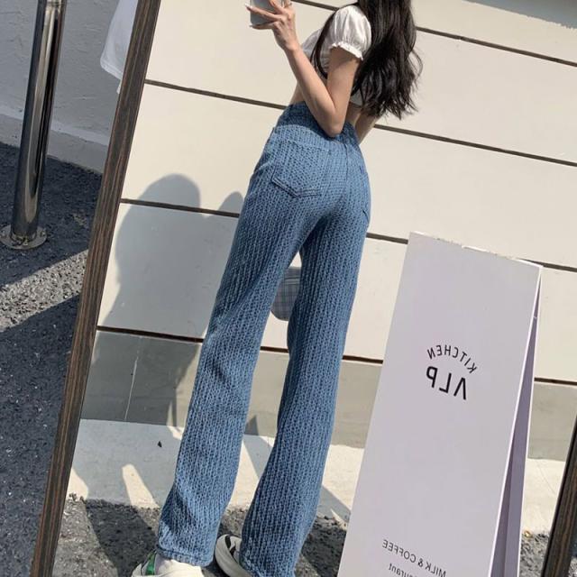 ジーンズ 編込み 美シルエット ハイウエスト ワイドデニムパンツ ゆったり 脚長効果 韓国ファッション リラックスパン 春 秋 着痩せ