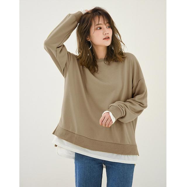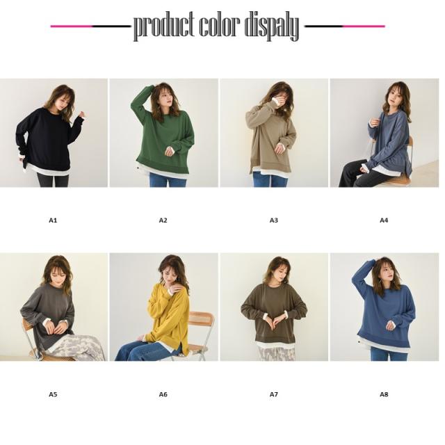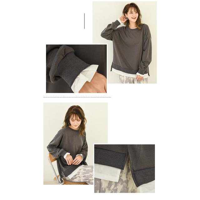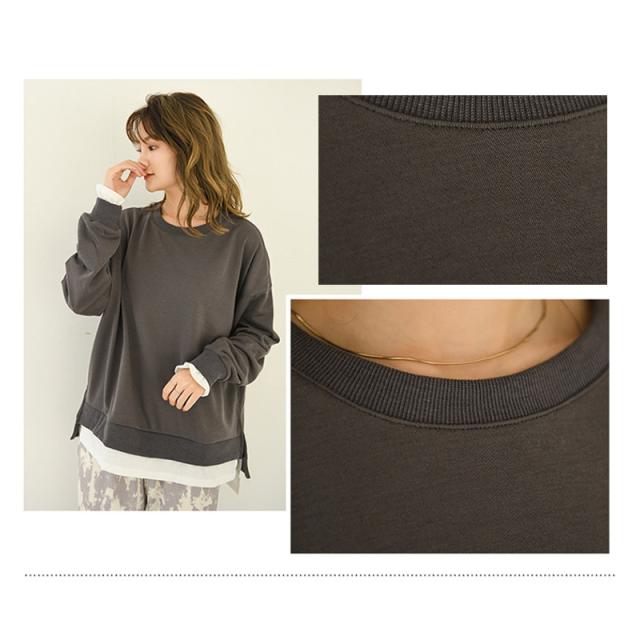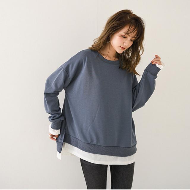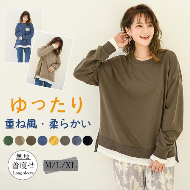 重ね風 カットソー レディース 長袖 ロンT トップス tシャツ レディース シンプル 無地 ゆったり 春 冬 秋 着痩せ カジュアル インナー