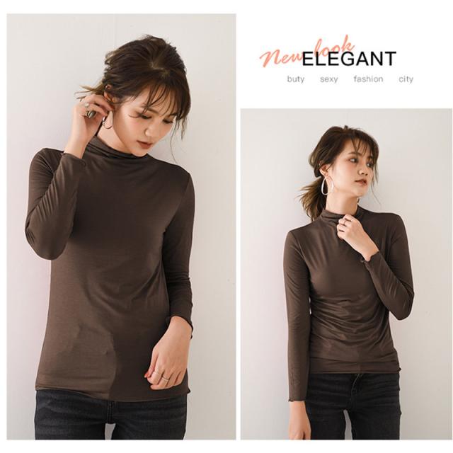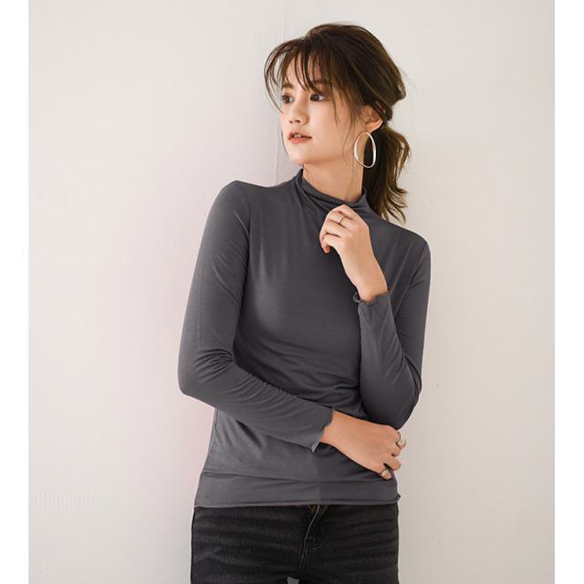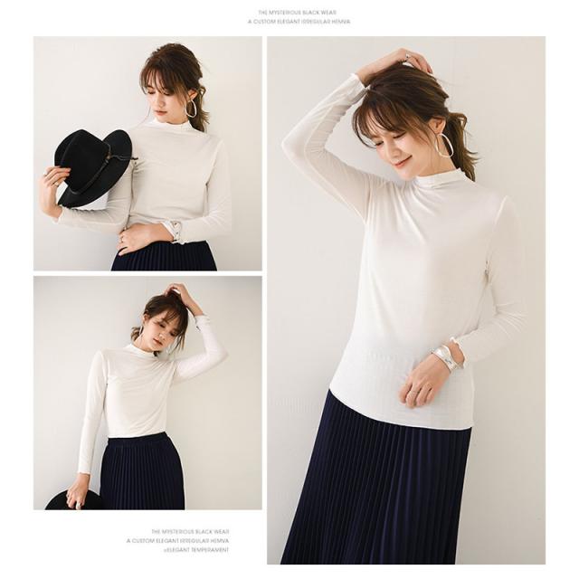 肌着 インナー カットソー レディース 長袖 ロンT トップス tシャツ レディース シンプル 無地 ハイネック 春 秋 着痩せ ルームウェア