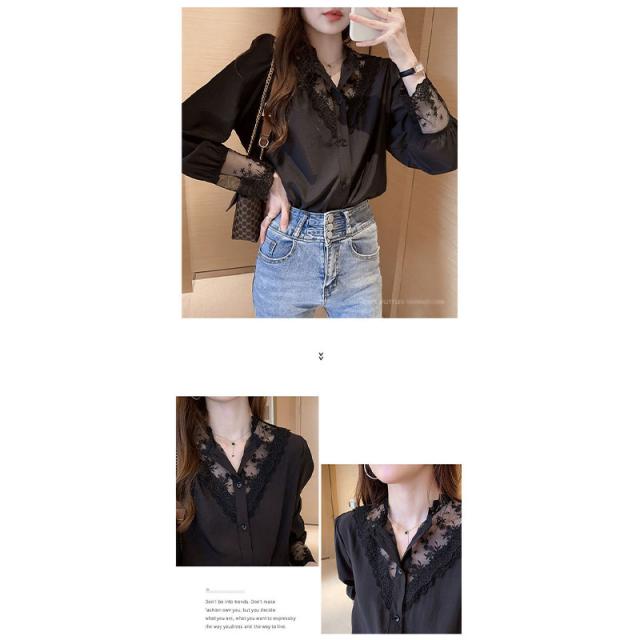 シャツ ブラウス レディース 刺繍 レースブラウス トップス 長袖 シャツ 大人セレブ カットソー おしゃれ韓国ファッション 春秋新作
