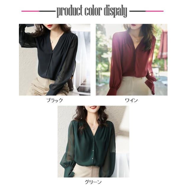ブラウス レディース シャツ トップス Vネック バルーンスリーブ バルーン袖 シフォンVネックシフォンスリーブブラウス
