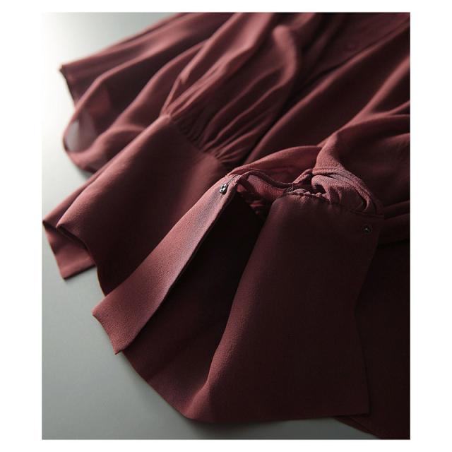 カフス袖のような長めの袖口でと肩の施されたギャザーで華やかさUP!