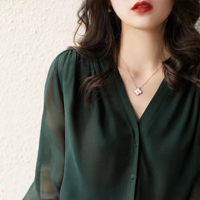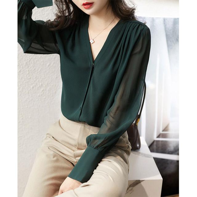 【 Vネックシフォンスリーブブラウス 】