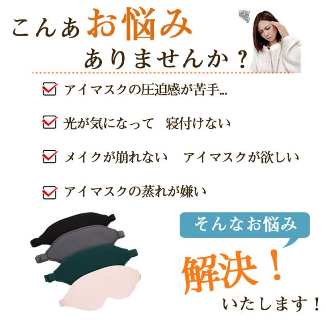 - 目元に隙間があるので圧迫感や違和感が無く心地いいです。 光も全く気にならずぐっすり眠れました! 私はグリーンにしましたが深みのある色で気に入ってます