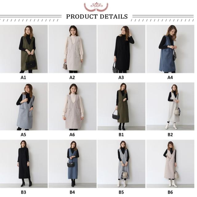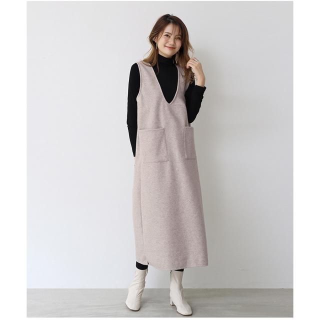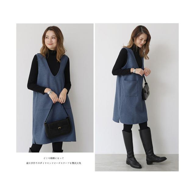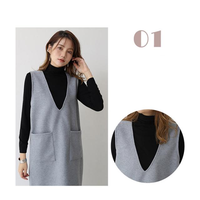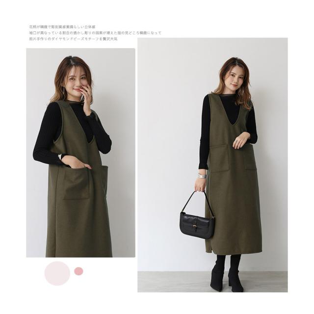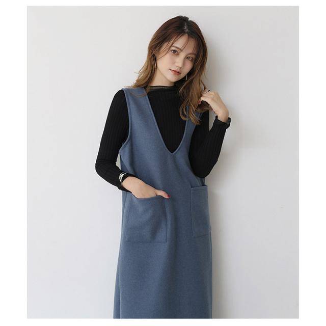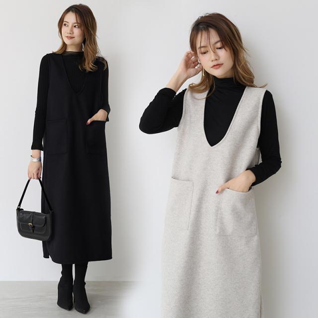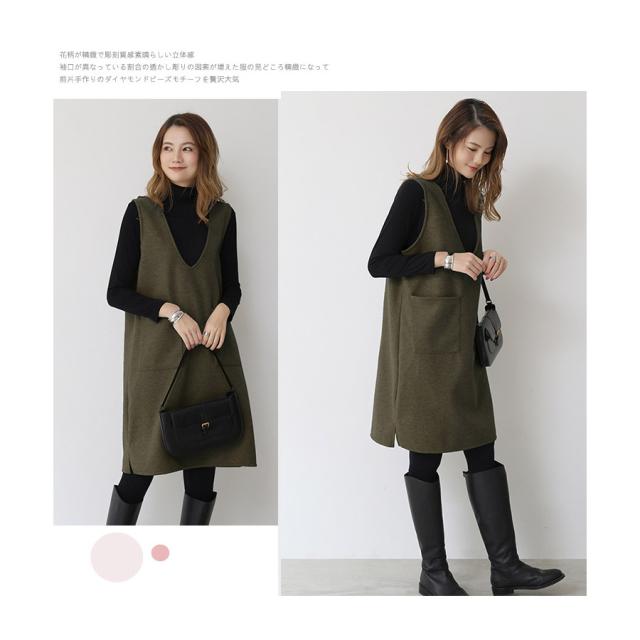 チュニック ニットベスト レディース ニット ワンピース 秋 ニットワンピース 膝丈 キャミワンピース vネック 無地 カットソー 秋冬 コーデ ノースリーブ ひざたけワンピース 柔らかい 体型カバー あったか シンプル ベーシック 20代 30代 50代 40代