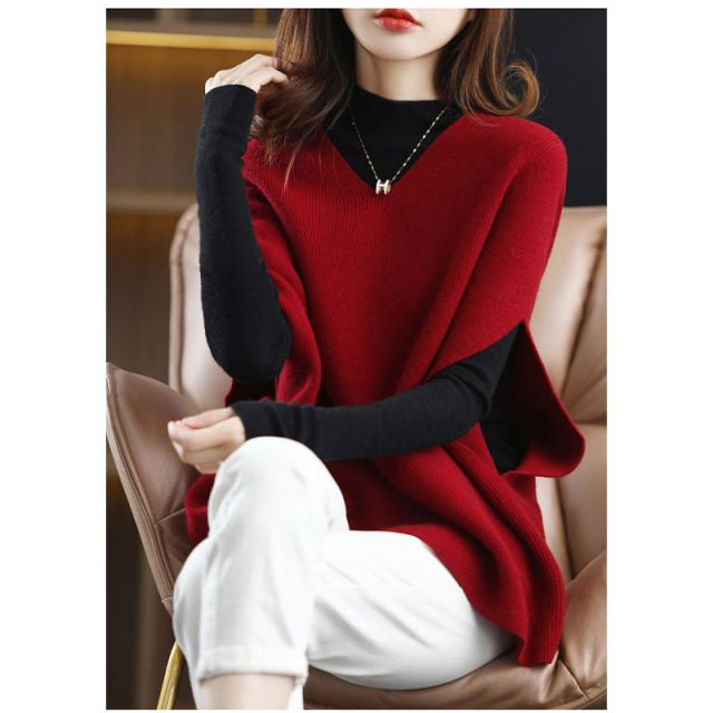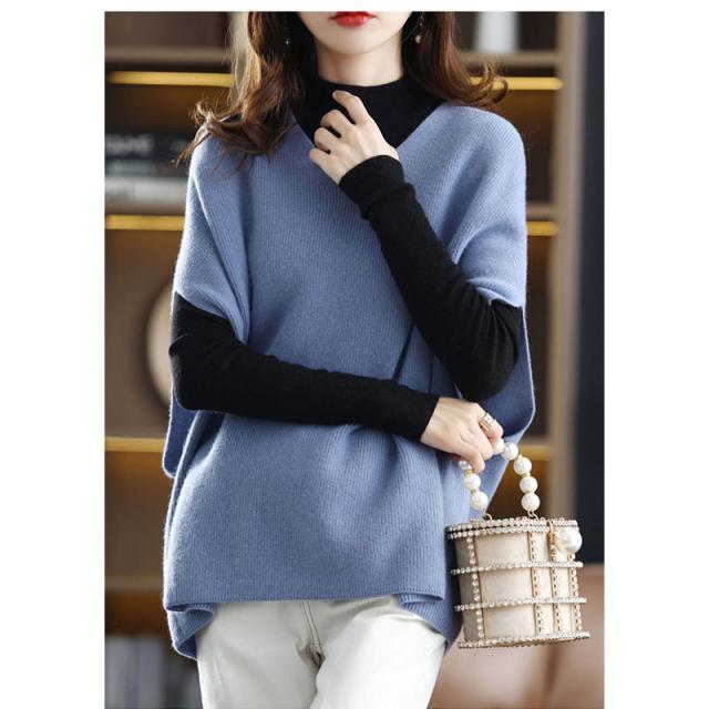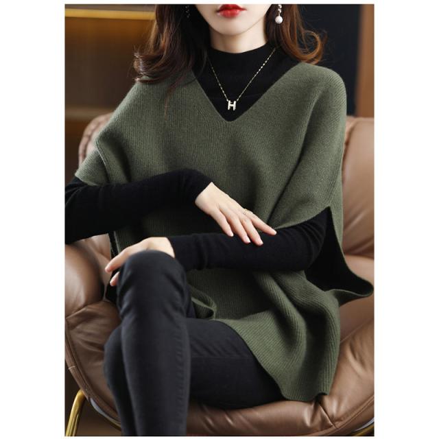 ニットベスト レディース ノースリーブ トップス スウェット Vネック レイヤード タンクトップ サイドスリット コーデ 重ね着