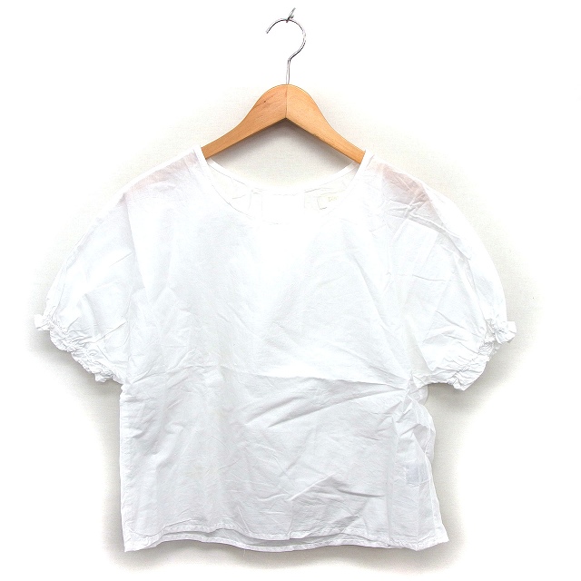 【中古】ディスコート Discoat ブラウス カットソー 透け感 コットン 綿 ボートネック タック 半袖 M 白 ホワイト