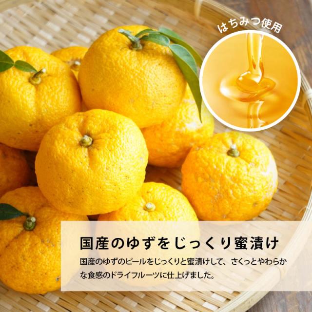 ◆商品説明:国産のゆずピールを、じっくり蜜漬けしたやわらかい食感のドライフルーツです。