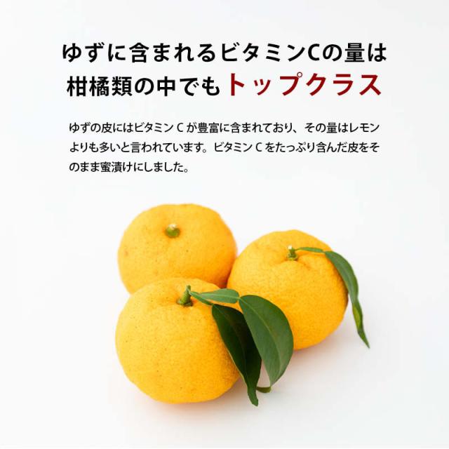 ◆原材料:ゆず皮(国産)、砂糖、ぶどう糖、還元水あめ、はちみつ/トレハロース、クエン酸、ビタミンC、乳酸Ca、酸化防止剤(酵素処理ルチン)、酒精