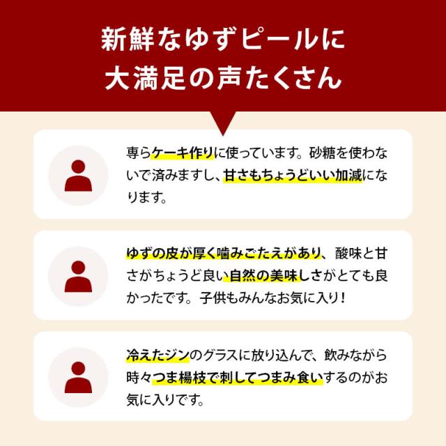 素材の味がギュッと凝縮され、ゆず皮の甘み、酸味、苦みのバランスが絶妙。