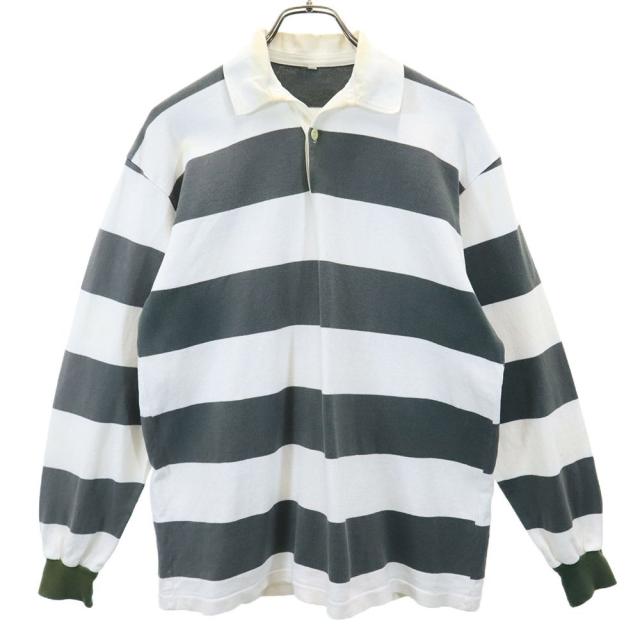 日本製 ボーダー柄 ラグビー 長袖 ラガーシャツ M グリーン系×ホワイト ジャージ メンズ