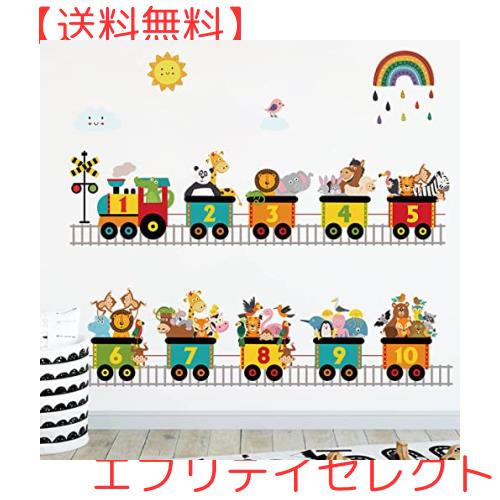 Condessacity ウォールステッカー 子供 小さな電車 壁紙シール はがせる 動物 番号 漫画の電車 ウォールすてっかー こども部屋 幼稚園 保