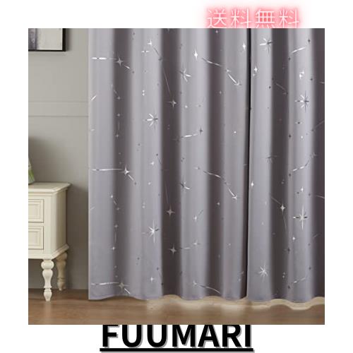 ◆商品名:Topfinel カーテン 遮光 おしゃれ 星柄 箔プリント 遮光カーテン 135cm丈 2枚組 グレー 小窓 カフェカーテン 省エネ 断熱 寝室 防音カー