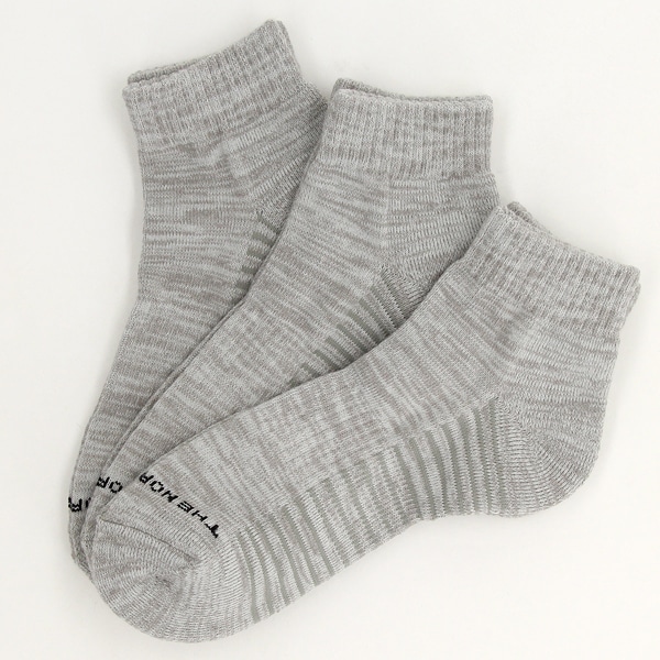 3足セットになったくるぶし丈の吸汗速乾ソックスです。長時間の歩行やランニング時に生じやすいアーチのくずれを軽減する、アーチサポート機能付きです。銀イオンによる抗菌防臭効果を発揮するポリジン加工を施し、嫌なにおいを軽減します。蒸れやすい足底部には凸凹形状のアンイーブンパイルを入れることで足をドライに保ち、シューズ内の快適さを維持。
