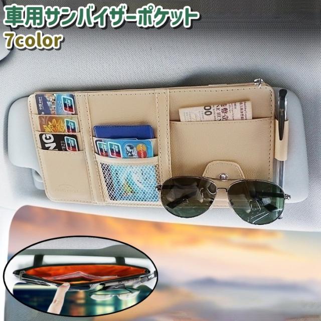 車用サンバイザーポケット カー用品 黒 茶色 グレー ピンク レザー調 フェイクレザー シンプル 車 自動車 お札 カード スマ