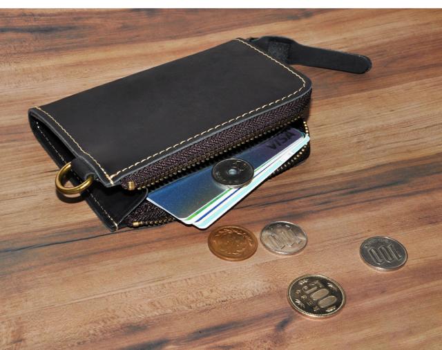 財布 ウォレット 牛革 本革 コインケース 小銭入れ カードケース カード 収納 おしゃれ Dカン ストラップ シンプル メンズ レディース 男女兼用