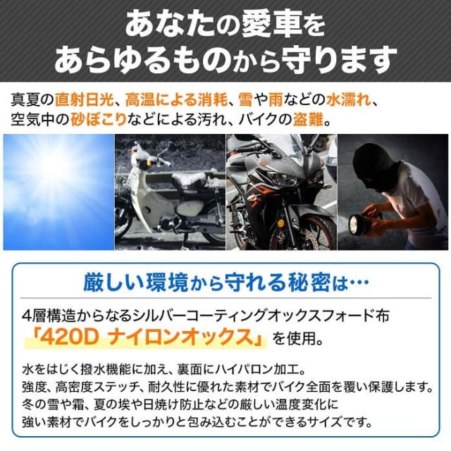 防雨、防塵、日焼け止めなどからなるバイクの劣化を防止します!