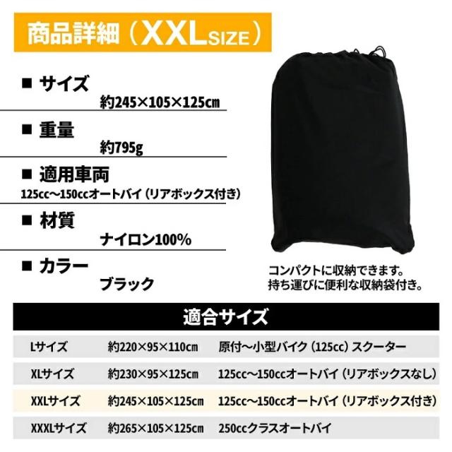 XXL:125cc〜150ccオートバイ(リアボックス付き)